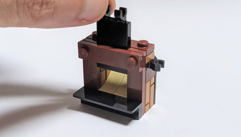 Today’s model is a fireplace – presumingly (based on the Privet Drive sign we got the first day) from the Dursley house. It is also the first model to have a decent part count – with 20 bricks (including one spare) included in today’s plastic bag.