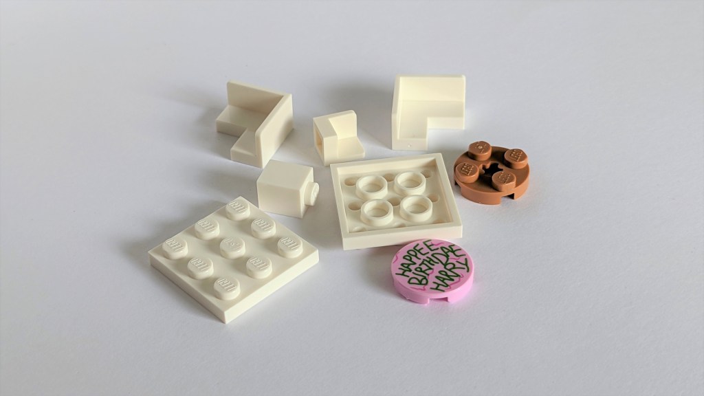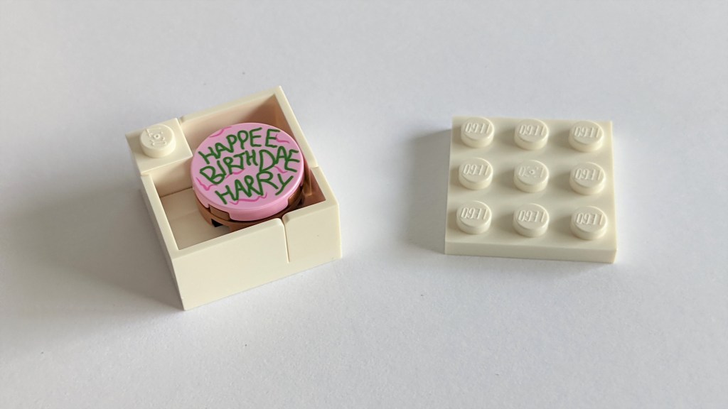 It is a simple build, and not that many parts either. But I really like the printed tile matching the cake from the movie. I know there are opposing views on the text, with many pointing out that there is no indication in the books that Hagrid suffered with dyslexia. The spelling on the cake is a decision made by Warner Bros, and I’ve got no particular issues with it, noting that dyslexia does not suggest a lower intelligence at all.