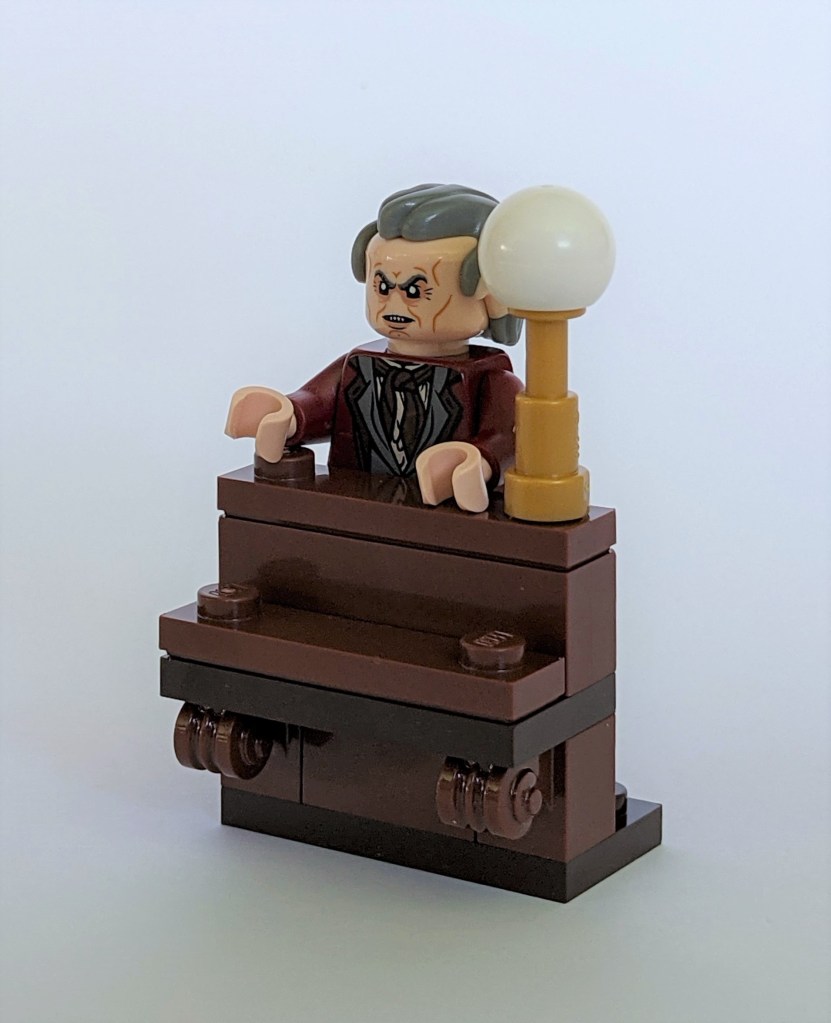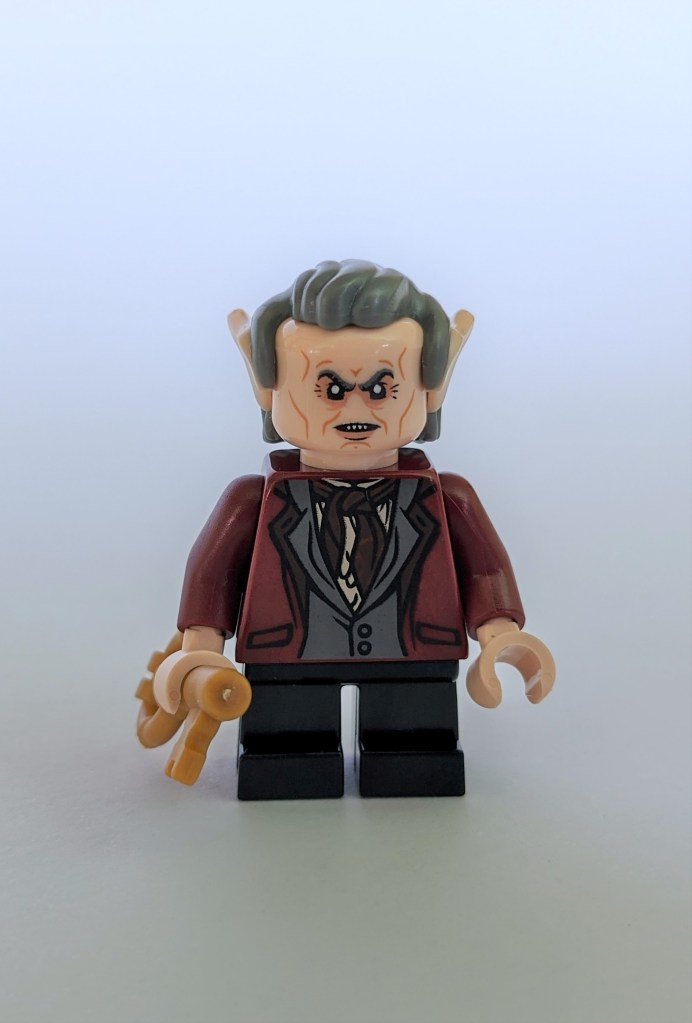 Today’s model is a minifigure of Griphook – the head of the goblins working at Gringotts bank. He’s the one who served Hagrid and Harry when they arrived at the bank in the first movie.
