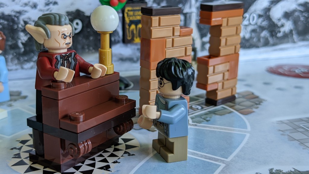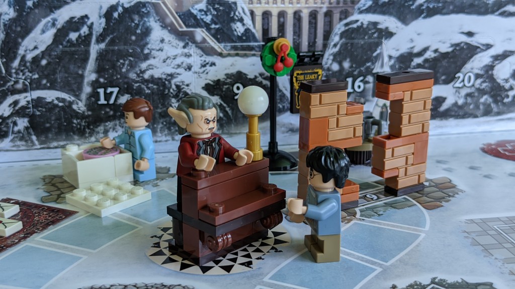 So is the version in the calendar then a good representation of Griphook as seen in the first movie? Actually not – as we was wearing a black jacket in that one. The torso used has actually been used twice before – for Ollivander in the exclusive 2020 Diagon Alley set and for an unnamed wizard (probably Dedalus Diggle) in this year’s Wizarding World Minifigure Accessory pack. While the torso, hair and legs have all been used before, the head is unique to the calendar, as the CMF series 2 version only had one facial expression printed on the head.