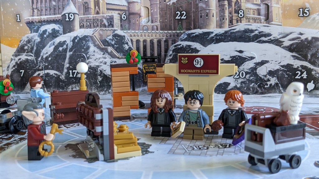 Given Hermione has joined Harry and Ron, I assume they have started their journey on the Hogwarts Express. Will we reach Hogmeade tomorrow, or could we be at Hogwarts already? Remember to check back on the Advent calendar review page to see where we got to…