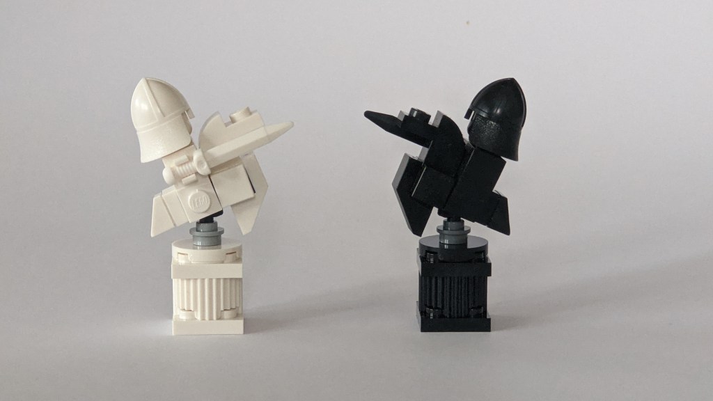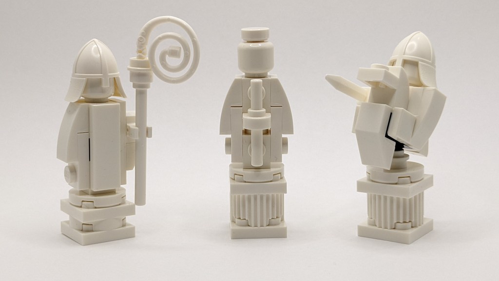 I used those to replace the light bluish grey pieces used on some of the chess pieces (they are used with the bishops, horses (unless you replace them as above) and the queen. If you redo the horses as above, you may want to source three of those bricks in each of white and black to fix up the bishops and queens (or five if you don’t plan to update the horses).