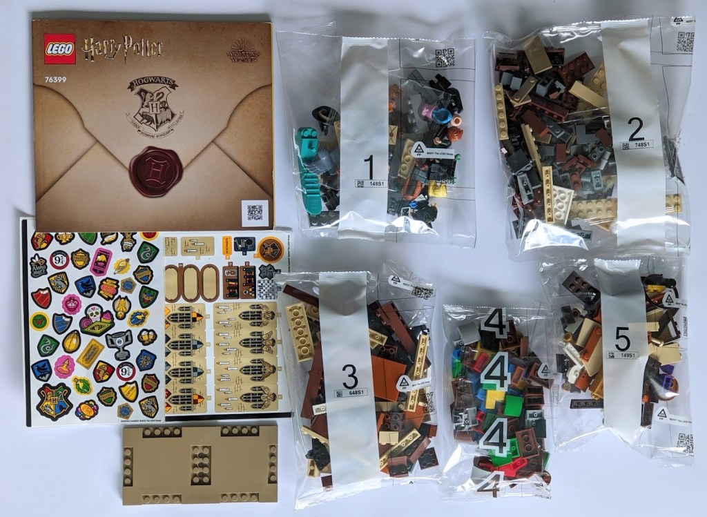 The last bag includes parts to build small models to recreate the different scenes, such as tables for the great hall (which can be rebuilt into student beds for their dormitories), banners and a couch. You also get to build a key with keyring for the trunk.