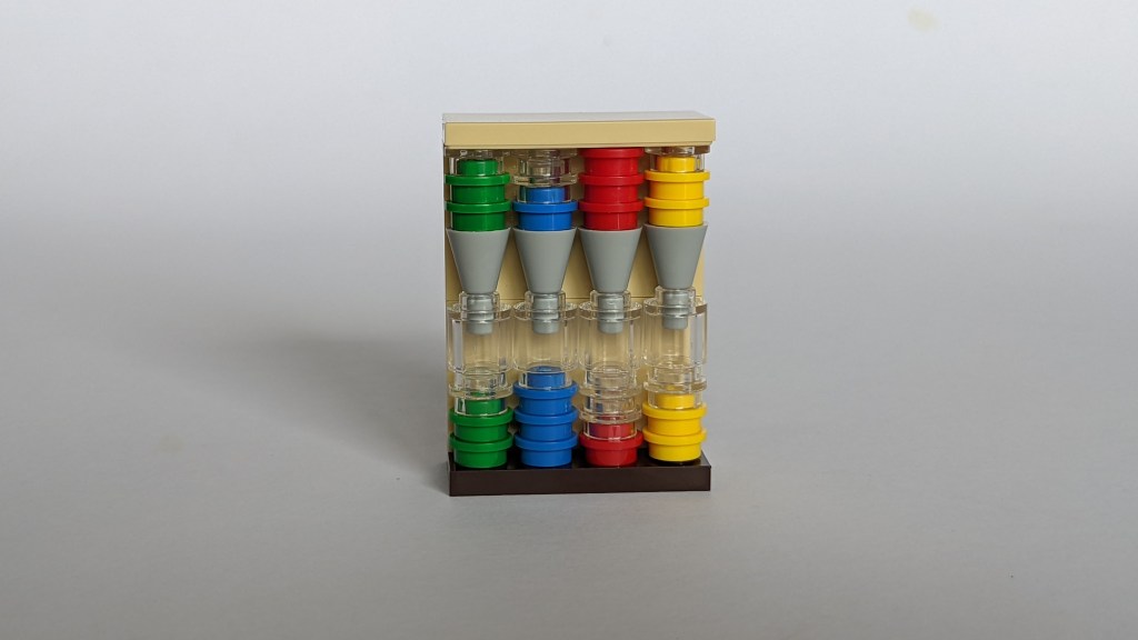 The fourth bag includes the parts to decorate the trunk. As shown here, tiles in different colours are included so the trunk can be customised to appears in any of the four house colours.