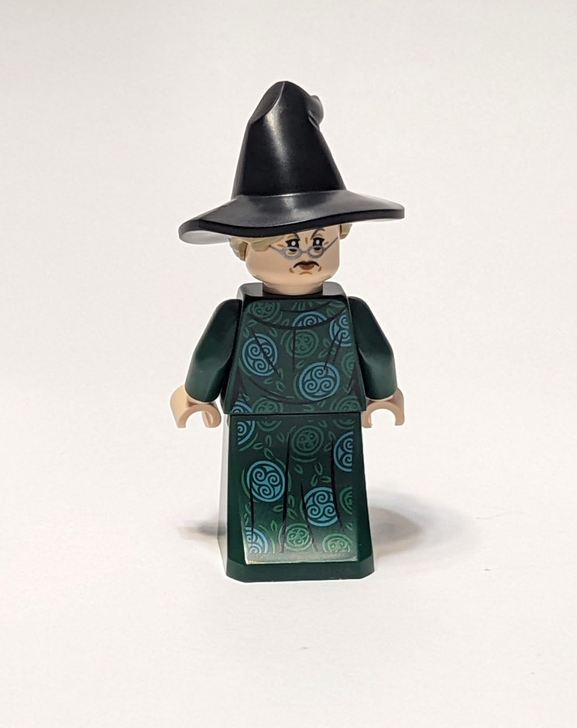 Six minifigures are included. First of all, we get the excellent version of Professor McGonagall we got in the Hogwarts Moments – Transfiguration Class set. Her torso and dress are nicely printed on both front and back, and the combined hair/crooked wizard hat piece is simply amazing.