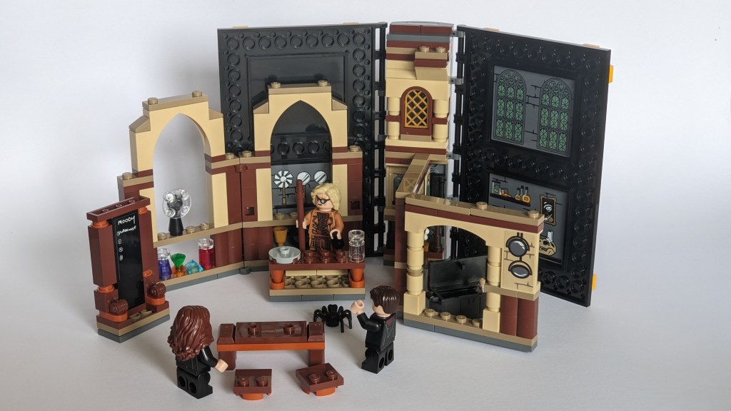 The Defence Against the Dark Arts is a great follow up to those sets. As the 2021 sets, the minifigures are of high quality, and the class room, when extended out, looks great. It is very reliant on stickers though which requires a steady hand to apply. Also, some of the mini-models have some design compromises, to ensure they can stack within the folded up book. Together those issues does detract somewhat, but overall, this is an nice addition to the Hogwarts Moments series.