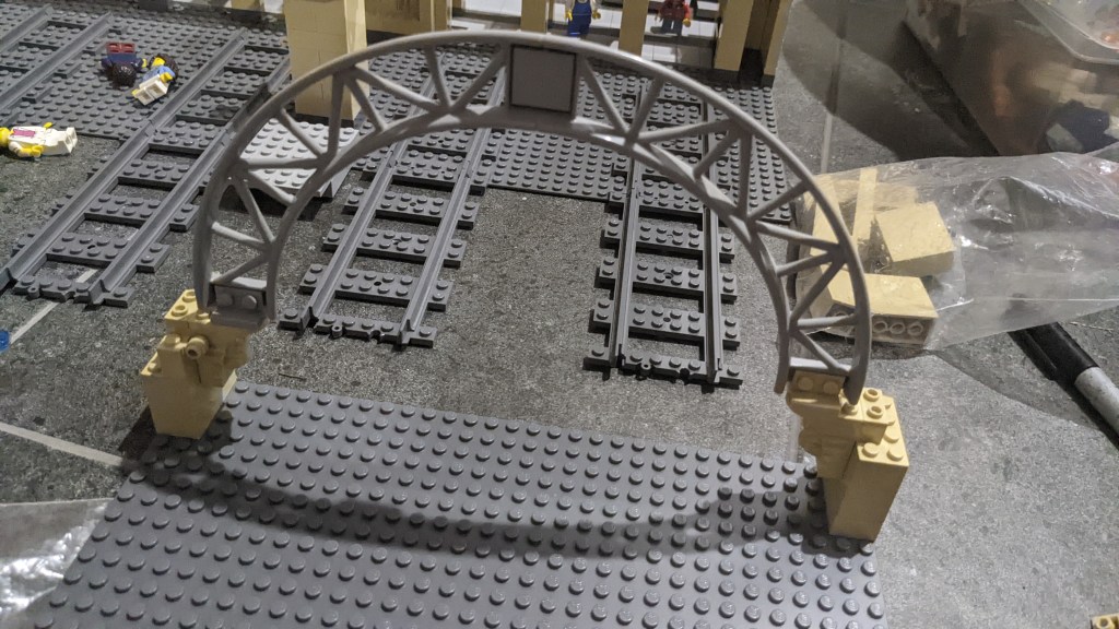 I couldn’t really finalise the facade without knowing how the roof would be constructed – and how it would attach to the facade. To progress with the roof, I needed to find out how the station looked inside. Basically, you have two large arches – one extending from each of the large windows on the front. Below is a photo of the left arch – it covers four tracks. In my version, I only have four tracks in total, so each arch will cover two tracks.