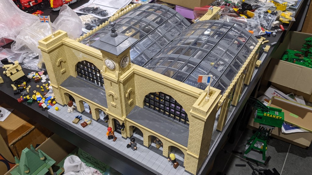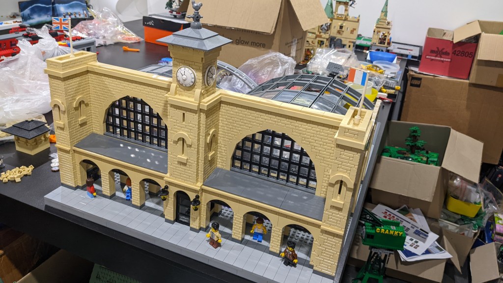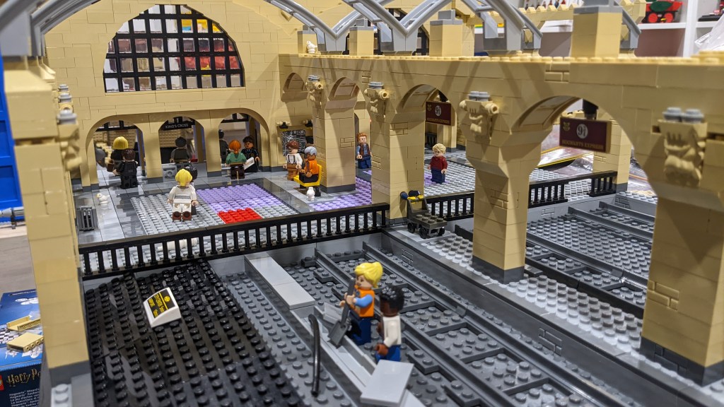 To start, I’ll recap what the station looks like from the front. Here is a photo I took (appropriately, with a Harry Potter minifigure in front) when I visited the London in 2018.