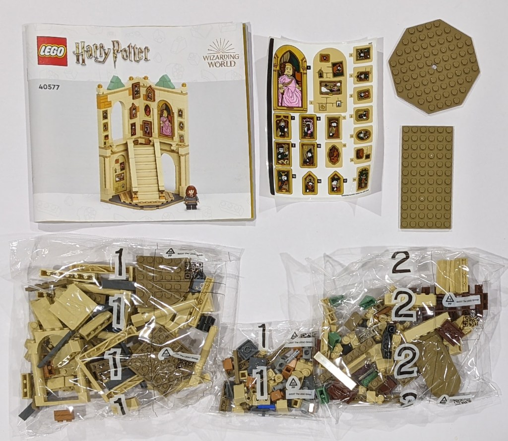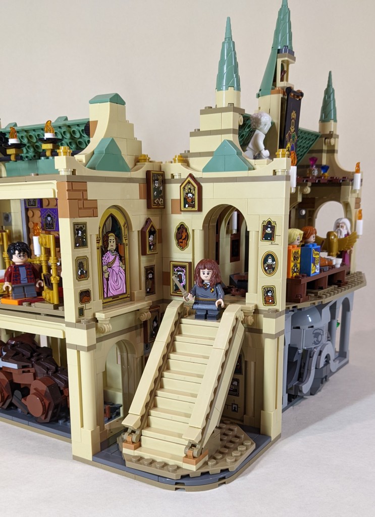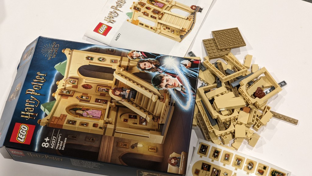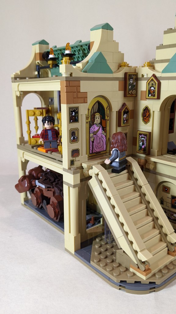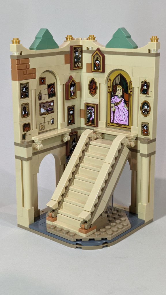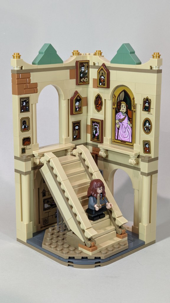 I was surprised to have such a large set as this as a GWP set, though it doesn’t have as much detail as last year’s model – and only one minifigure. Also, it is sticker heavy, but it really does represent the Grand Staircase well with all those paintings, supplementing the moving staircase well. I really like the panel with the sticker of the Fat Lady painting. Now we just need to wait for a Gryffindor Common Room set – though many of you may already have built your own.