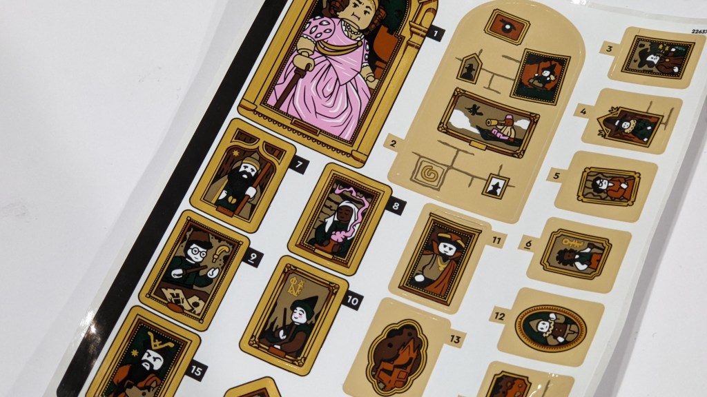 You can see those panels below with the stickers applied – along with how the portrait looked in the movies. It is a great addition – though we have had stickers with the Fat Lady guarding the entrance to the Gryffindor common room before. That was long ago however, dating back to the the 2001 and 2004 Hogwarts Castle sets.