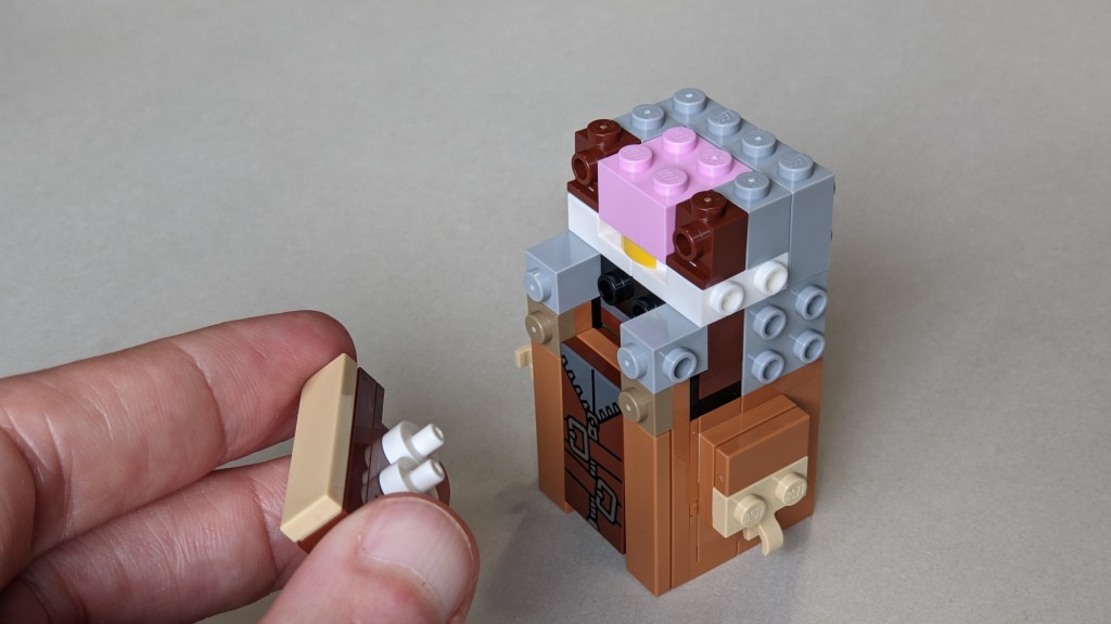 An interesting technique was used to create the headband that holds the magical eye as seen on the third photo above. You can also see the pink brick that is included in all Brickheadz figures, representing their brains.