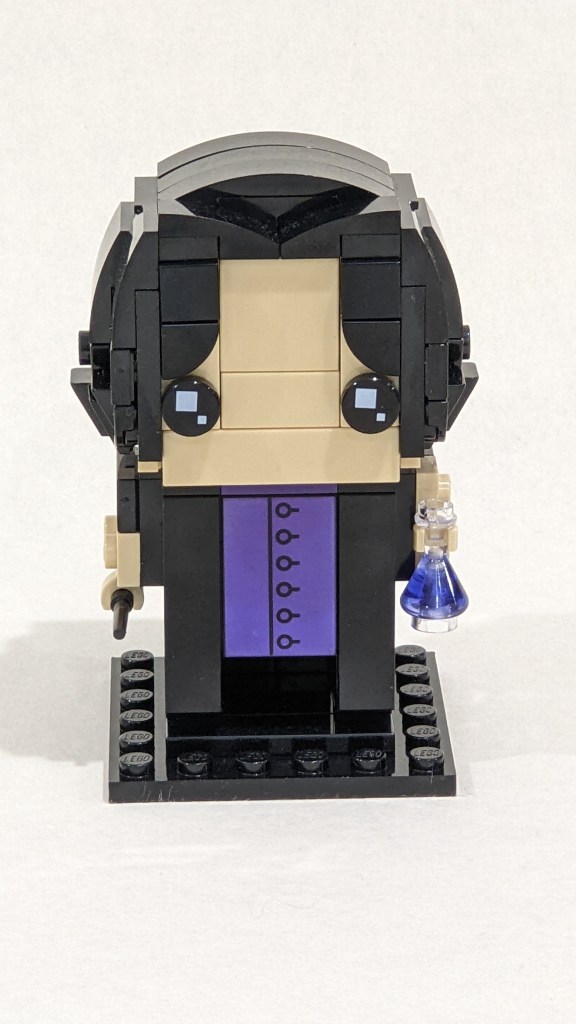 And here is then the last of the completed Brickheadz figures. She is often portrayed with a crystal ball on photos, but I guess it didn’t work out with the size of the hands. Instead she is holding a tea cup, with is also very appropriate for Trelawney. She might be holding Harry’s cup with tea leaves and is just about to see the grim.