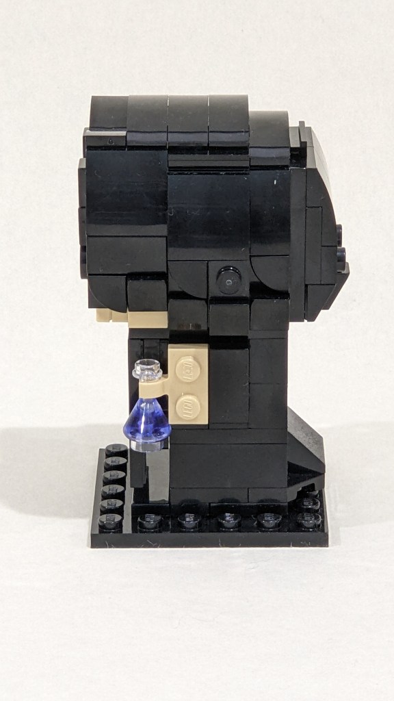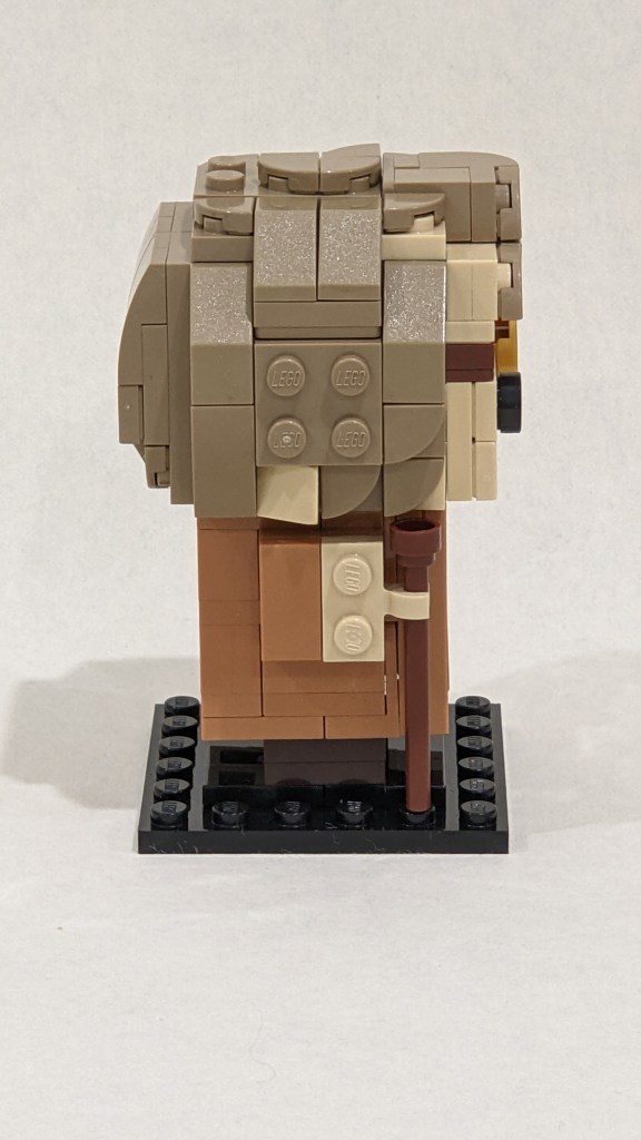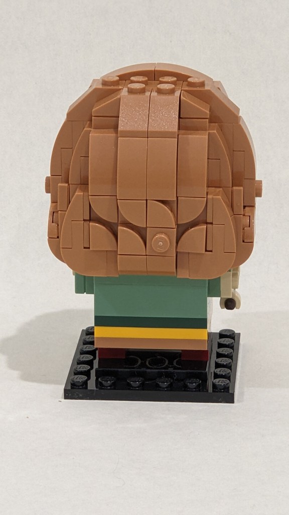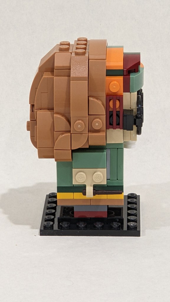 The last of the four professors is Sybill Trelawney – the divination teacher. Her torso was probably the most simple to build, but her hair was interesting (though it could have been even more voluminous) with the hairband at the front. Her face also used an interesting sideways technique to add the black centre of her glasses (see third photo below).