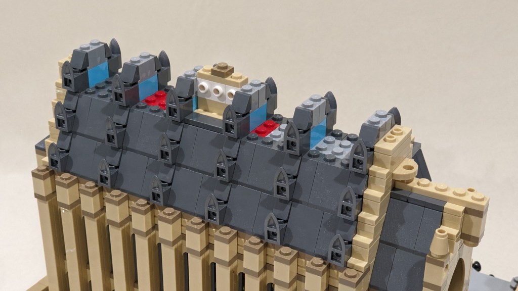 Returning to the roof, with the gables done, we can now build the main roof. With the fear of repeating myself, I really like the detail on this part as well.