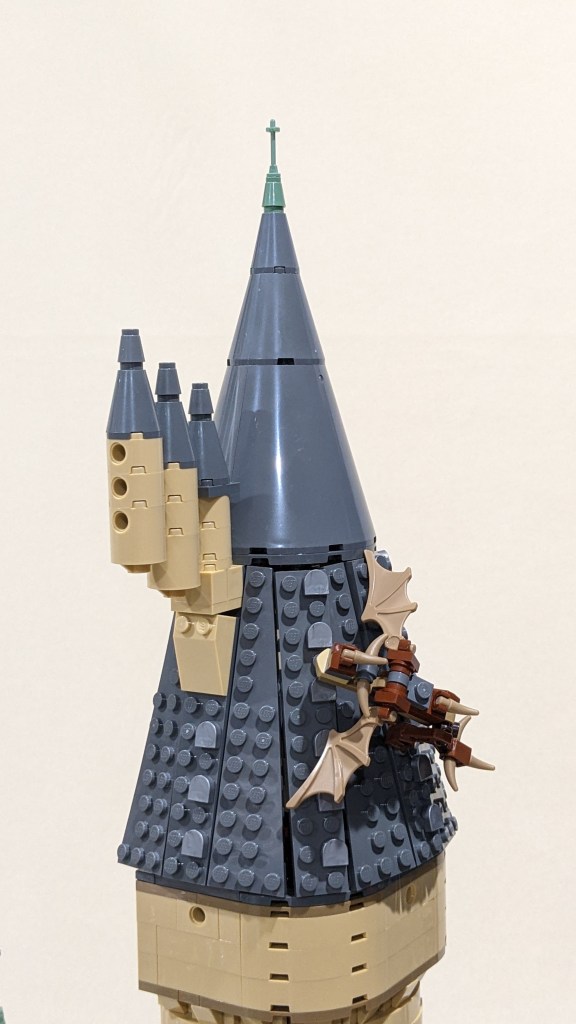 To complete the Great Hall, we just need to add its towers. Curved slopes are used for the centre tower roof, and it works really well.