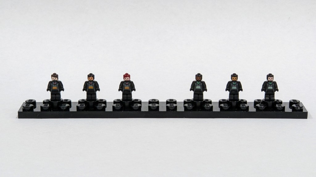 Throughout the build, we have been getting minifigures – one per book. The four characters are the Hogwarts founders: Godric Gryffindor, Helga Hufflepuff, Salazar Slytherin and Rowena Ravenclaw. They come with a nice stand, with a tile with their house crest (sticker unfortunately) in front of each character. It is a great addition to the castle and add to the “exclusive” feel of the set.
