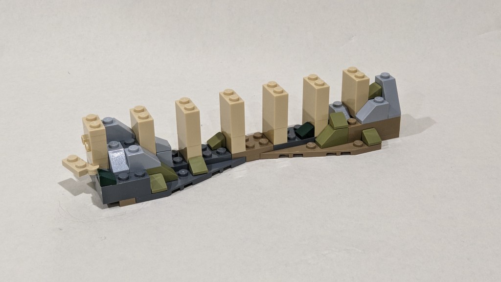 I had kind of expected to start with a minifigure and a small micro-scale build as we did with book 3, but instead we started on the wing of the section – more specifically with the wall, where it has been written with blood that the Chamber of Secrets had been opened.