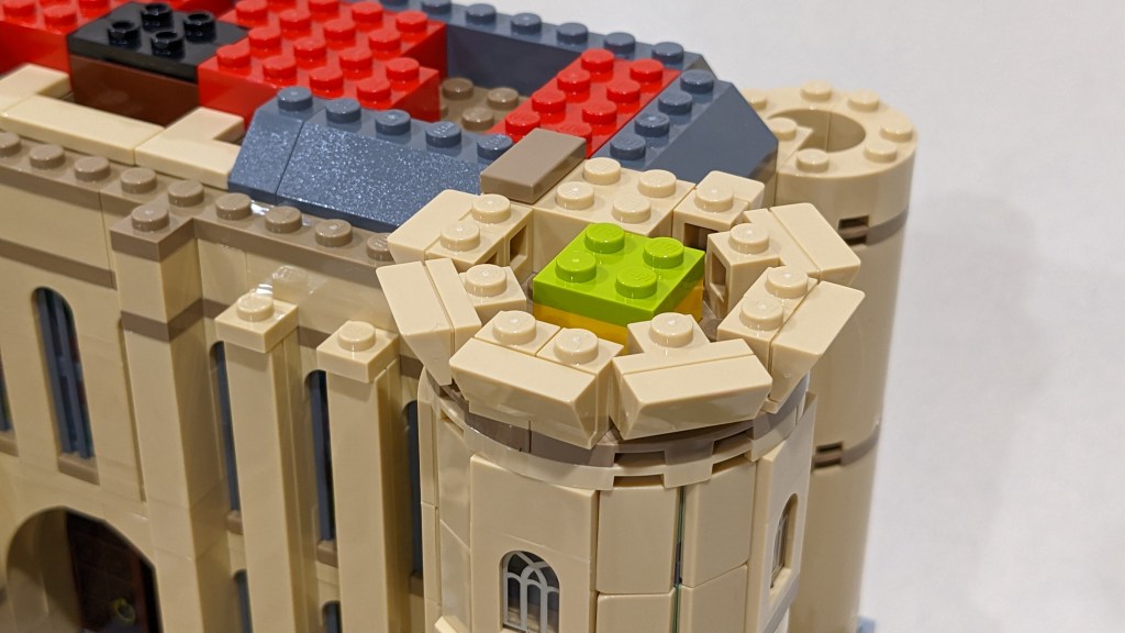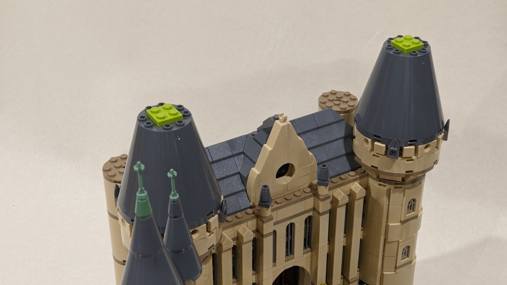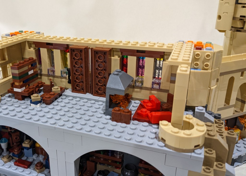 In particular I like all the odd angles that the castle has along with the different towers, wings and viaducts. The small separate micro-scale builds, like the boats, Hagrid’s hut and the dragon on the Central tower roof all add to the charm.