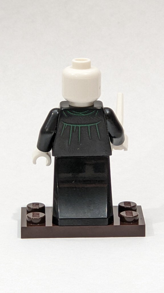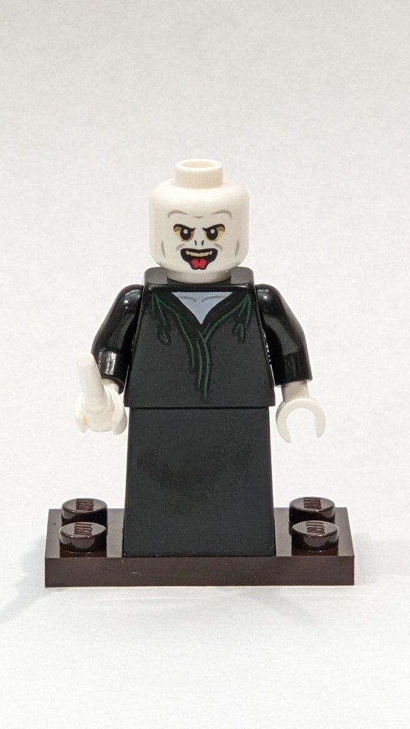 Again today, I may have put my hopes up too high. I do find it hard to be excited getting another Voldemort figure, but I guess he hasn’t featured that much recently. I got a few from the 2018 Harry Potter Collectable Minifigure (CMF) series 1 and another few from multiple copies of the Rise of Voldemort set from 2019. Excluding the golden anniversary version from last year, he was probably a good figure to get out again for newer collectors. So while my initial reaction was a score under average (3) due to the rather simple torso print, I will lift it to 4 out of 5 house points as my final score. This reflects its value to newer collectors and the split tongue detail.