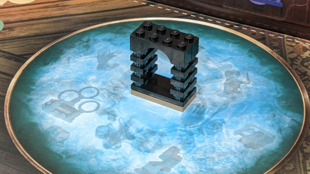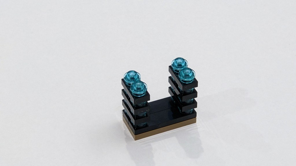 But also today, I was puzzled by the build and what it was meant to represent. I did rather quickly determine this was a scene from the Ministry of Magic, but which? My first thought was the stone archway in the Chamber of Death, but while the scene had a bluish light, it didn’t have anything blue on the sides. So in the end, I’ve settled on this being the Hall of Prophecy, which you can see below. The small blue bricks represent the orbs on the shelves.