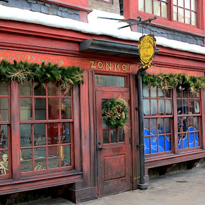 After a couple of days in the cold outside, today’s model get us into another shop in Hogsmeade. This is the infamous Zonko’s joke shop on Hogsmeade’s main street, which students like Fred and George Weasley loved to visit.