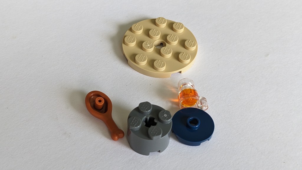 I had really hoped that after a somewhat unimpressive “middle part”, the calendar would start to ramp up and finish with a blast. But today was another let-down to be honest – with the lowest part count to date, a confusing colour scheme and uninspiring design. I’ll give it a low score of 1.5 out of five house points – and that is after adjusting it up because of the included butterbeer glass. A decent average daily model should have had one or two more glasses, or a couple of chairs.
