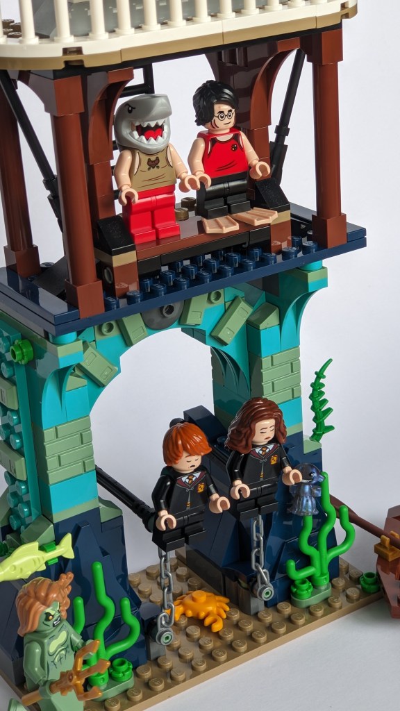 Before we round off, let’s have a quick look a the minifigures. The photos above showed them and I like the chains that hold Ron and Hermione in place. The soft plastic “tubes” attached to their back make the figures sway with the slightest touch, as if they were floating in water. That is a really neat feature.