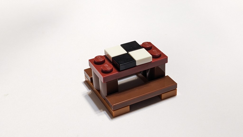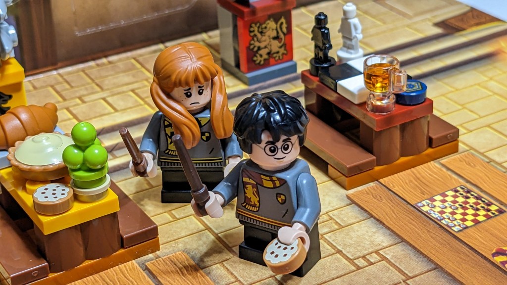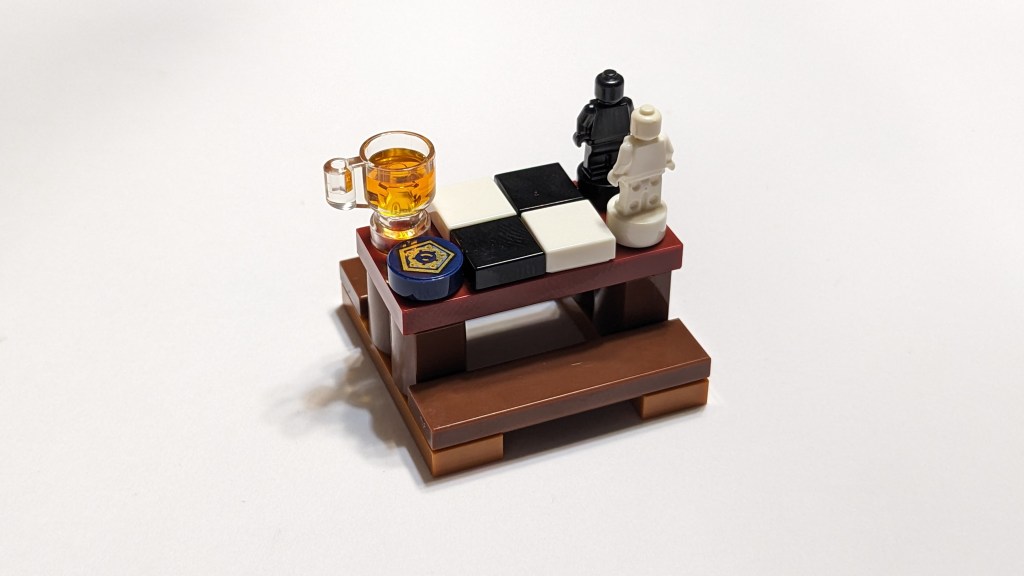I did quite like the Ravenclaw table, also because of a rather high part count, and some cool items on top. This is a similar situation with another table with many interesting parts on top, and also included as spares (a chocolate frog wizard card and two chess pieces). As result, I’ll give it a high score of 4.5 out of five house points.
