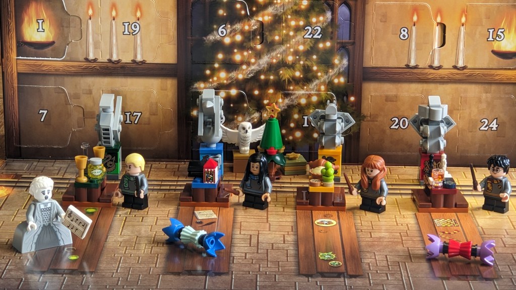 I checked with the tree we got earlier (4 Dec), and that doesn’t fit on the base, being too small. Maybe we’ll get a bigger one tomorrow? If we get smaller trees early on in the advent calendar, we often get a larger one towards the end. Be sure to check back tomorrow on the 2024 Advent Calendar page to see what we got.
